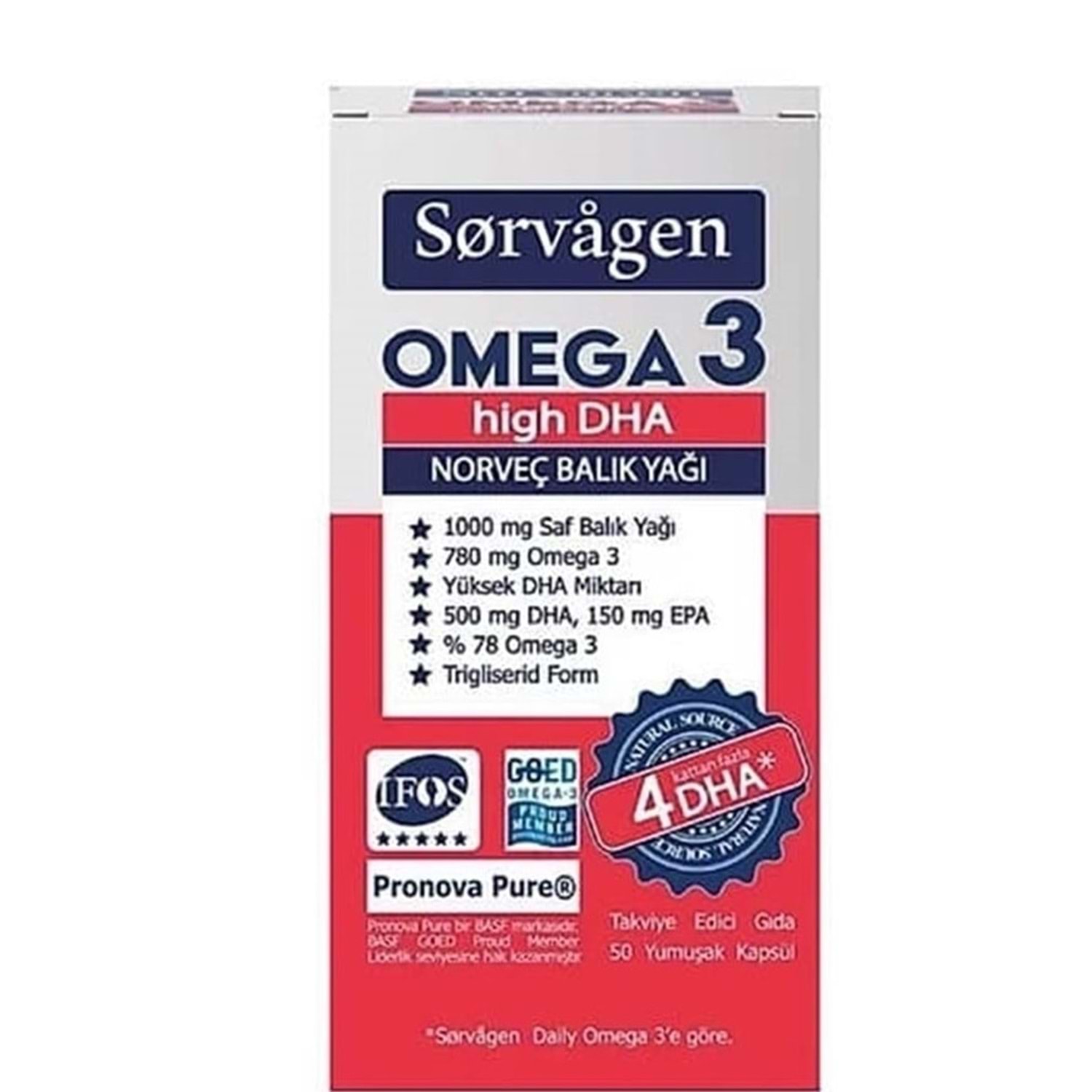 SORVAGEN OMEGA 3 HİGH DHA BALIK YAĞI 50 KAPSÜL ( NORVEÇ BALIK YAĞI )